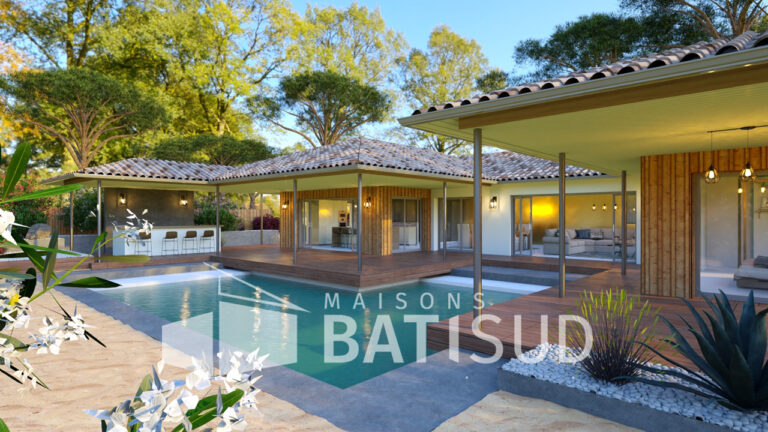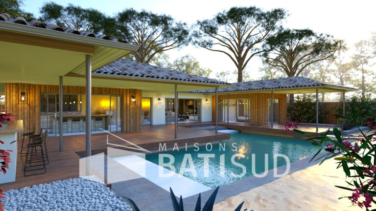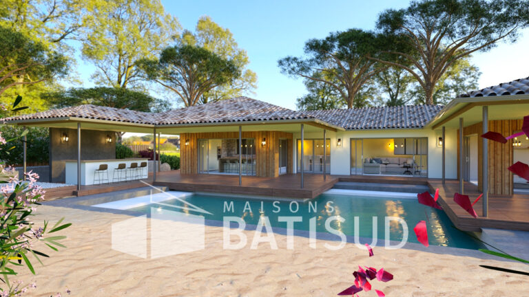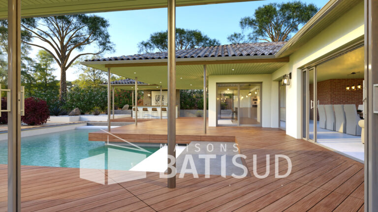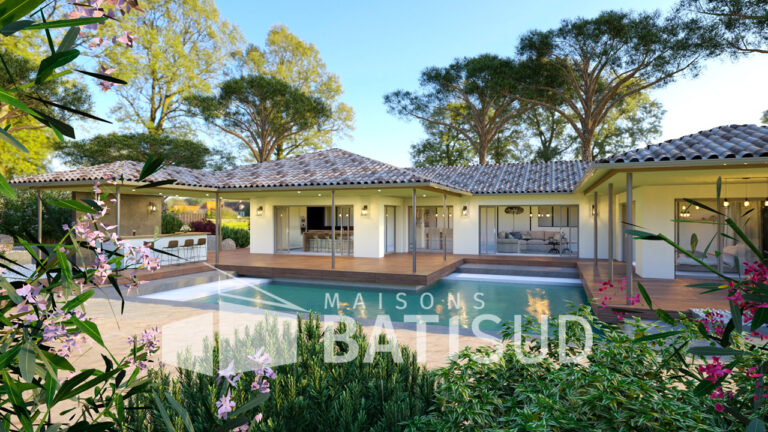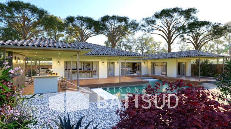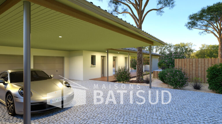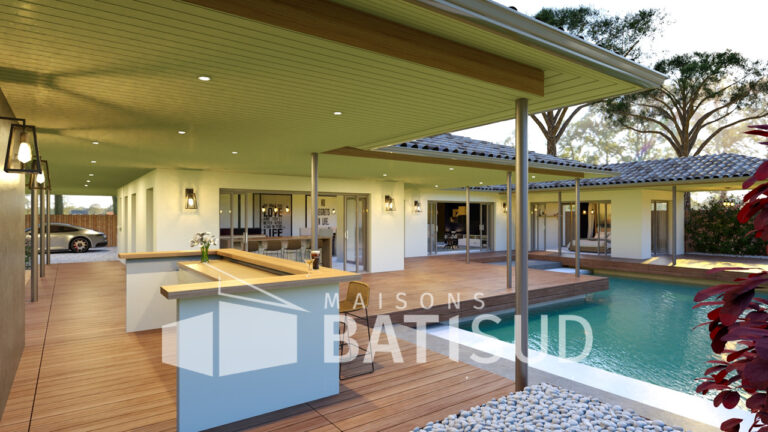 Imaginez-vous dans cette somptueuse maison de 150 m², conçue avec soin par MAISON BATI-SUD. Dès votre arrivée, vous serez accueilli par un abri voiture de 30 m², un **garage double** et un élégant porche d’entrée. Poussez la porte et découvrez une vaste pièce de vie baignée de lumière, entièrement modulable selon vos envies. La cuisine, ouverte sur une terrasse couverte, invite à des moments conviviaux en famille ou entre amis.