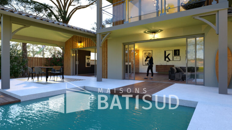 Découvrez notre modèle de maison de 150 m², conçu avec soin par MAISON BATI-SUD. Cette villa allie élégance, confort et détente, idéale pour vos vacances en bord de mer.