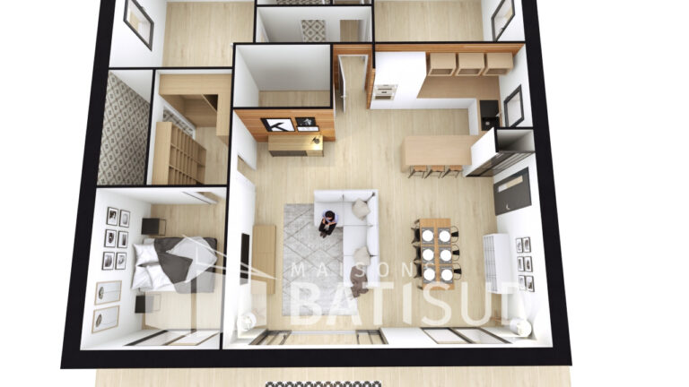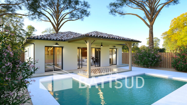 Laissez-moi vous présenter notre modèle de maison de 90 m², entièrement pensé par Maisons BATI SUD. Dès l’entrée, vous serez accueilli(e) dans un espace chaleureux et lumineux, avec un vestiaire pratique. La grande pièce de vie modulable s’ouvre sur une cuisine conviviale, qui donne elle-même sur une terrasse couverte. Imaginez les moments agréables que vous passerez ici, entre amis ou en famille !